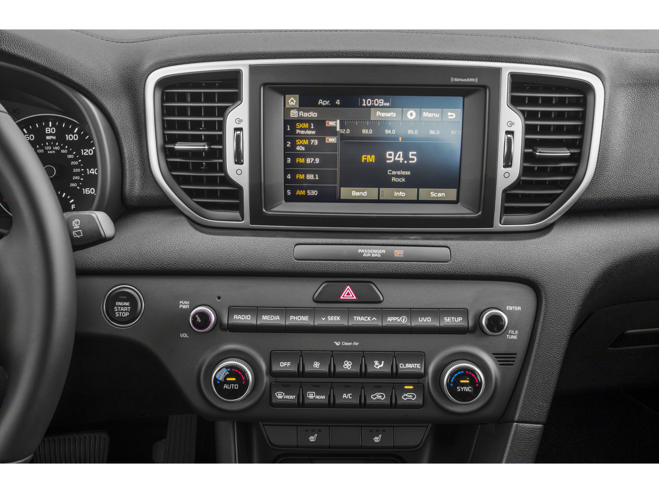 - Radio: AM/FM/SiriusXM -inc: 7" touch-screen, UVO eServices, Android Auto, Apple CarPlay, 6-speakers, 160-watts, Bluetooth® phone and streaming audio and USB/auxiliary input jacks